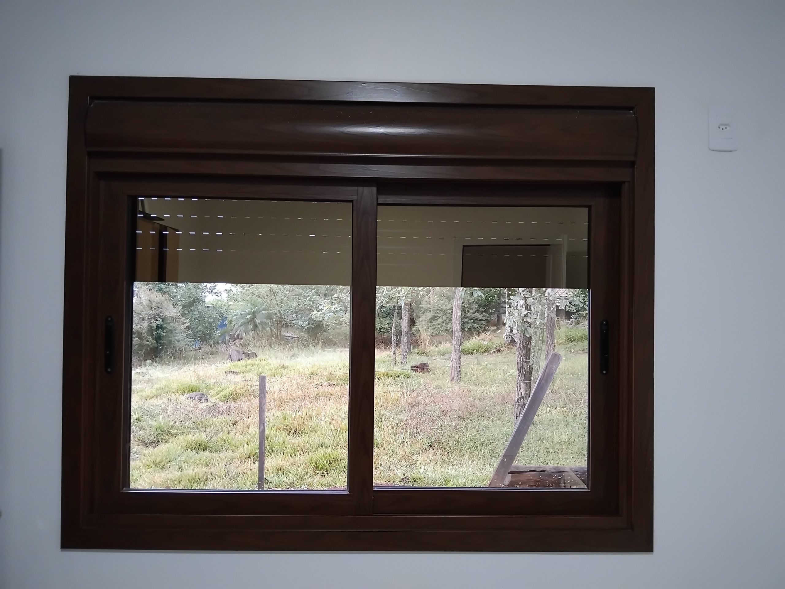 A persiana integrada no topo permite regular completamente a entrada de luz, oferecendo desde o escurecimento total até meia iluminação. Além disso, o sistema mantém o ambiente mais silencioso e confortável térmicamente.