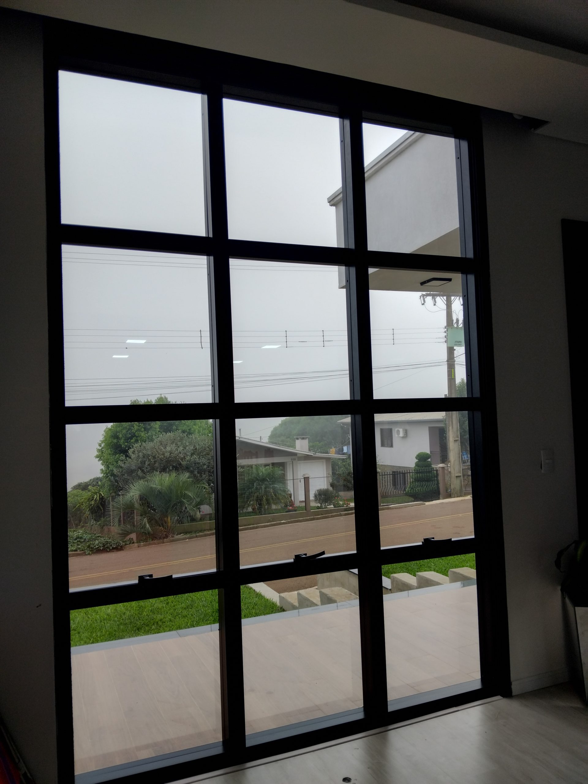 O sistema permite amplitude visual e valorização estética imediata da construção. As folhas projetantes integradas garantem ventilação controlada sem comprometer o design da fachada. Por dentro, o acabamento em alumínio preto cria um contraste refinado e contemporâneo, ideal para ambientes modernos.