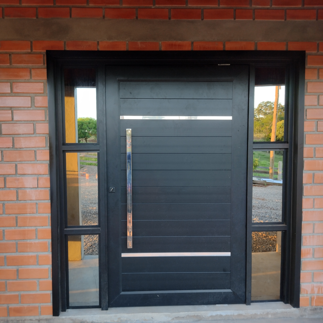 Visual sofisticado e acabamento de alto padrão. Desenvolvida com estrutura reforçada e sistema de abertura moderno, oferece durabilidade, segurança e design imponente, sendo ideal para entradas elegantes e fachadas marcantes.